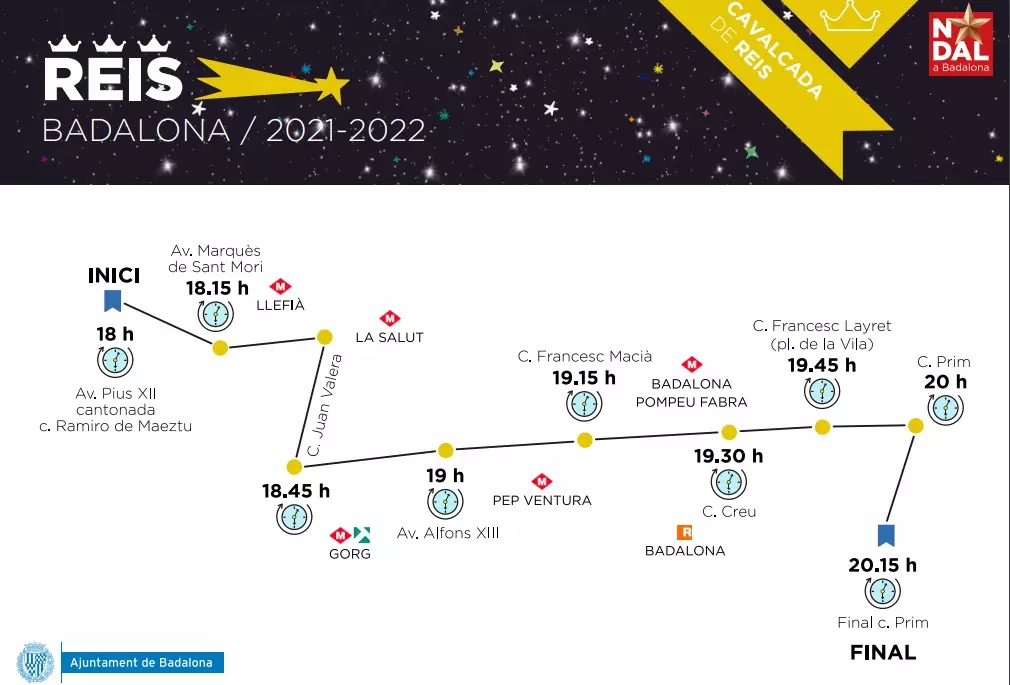 Los Reyes Magos de Oriente llegaron a Badalona, concretamente al Pont del Petroli, el pasado 28 de diciembre de 2021 en el barco Ciutat de Badalona para recibir el pan, la sal y la llave para poder entrar en todas las casas de la ciudad y dejar regalitos para los niños.